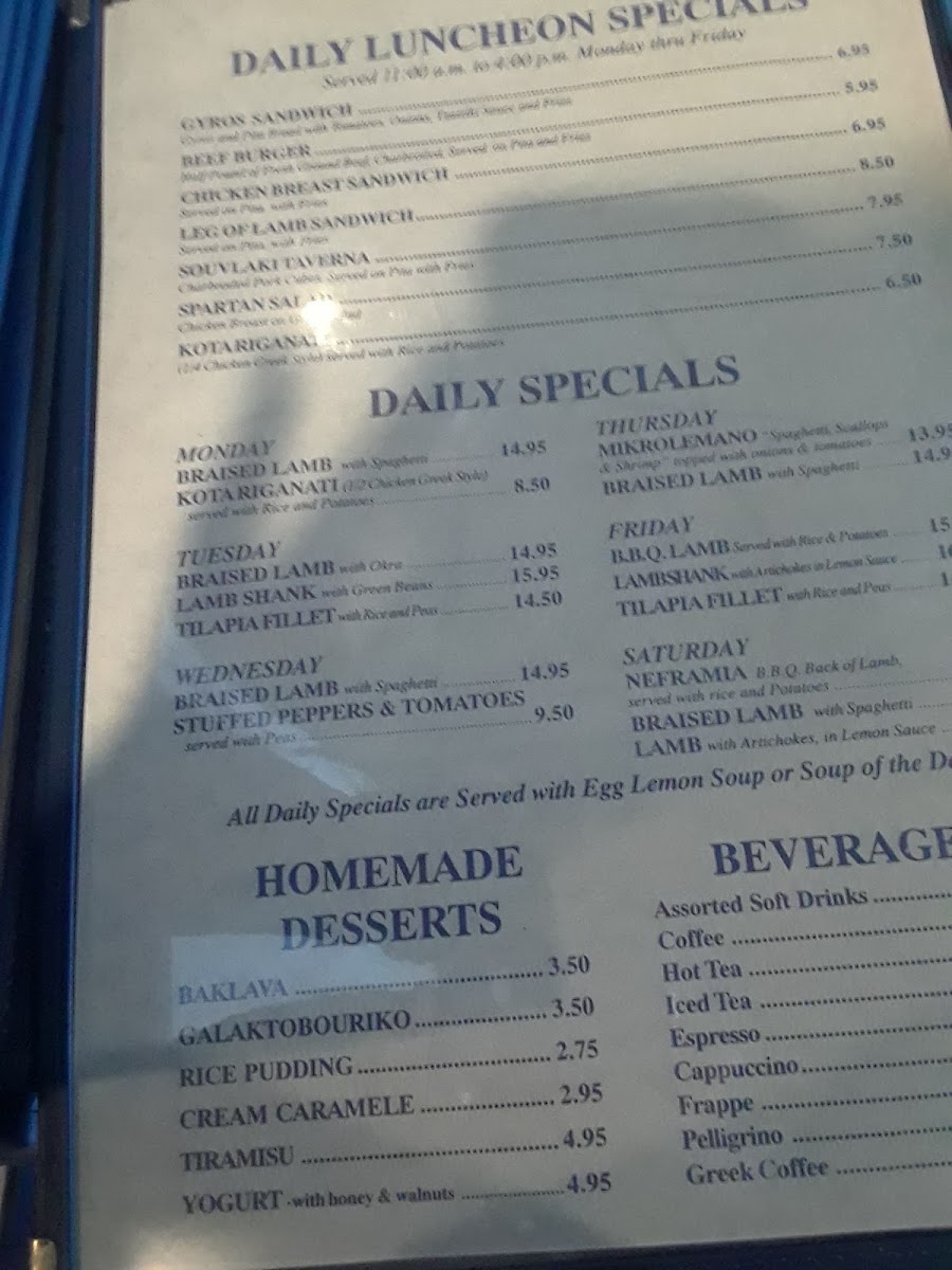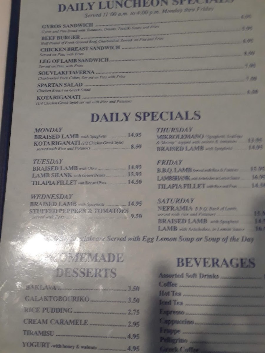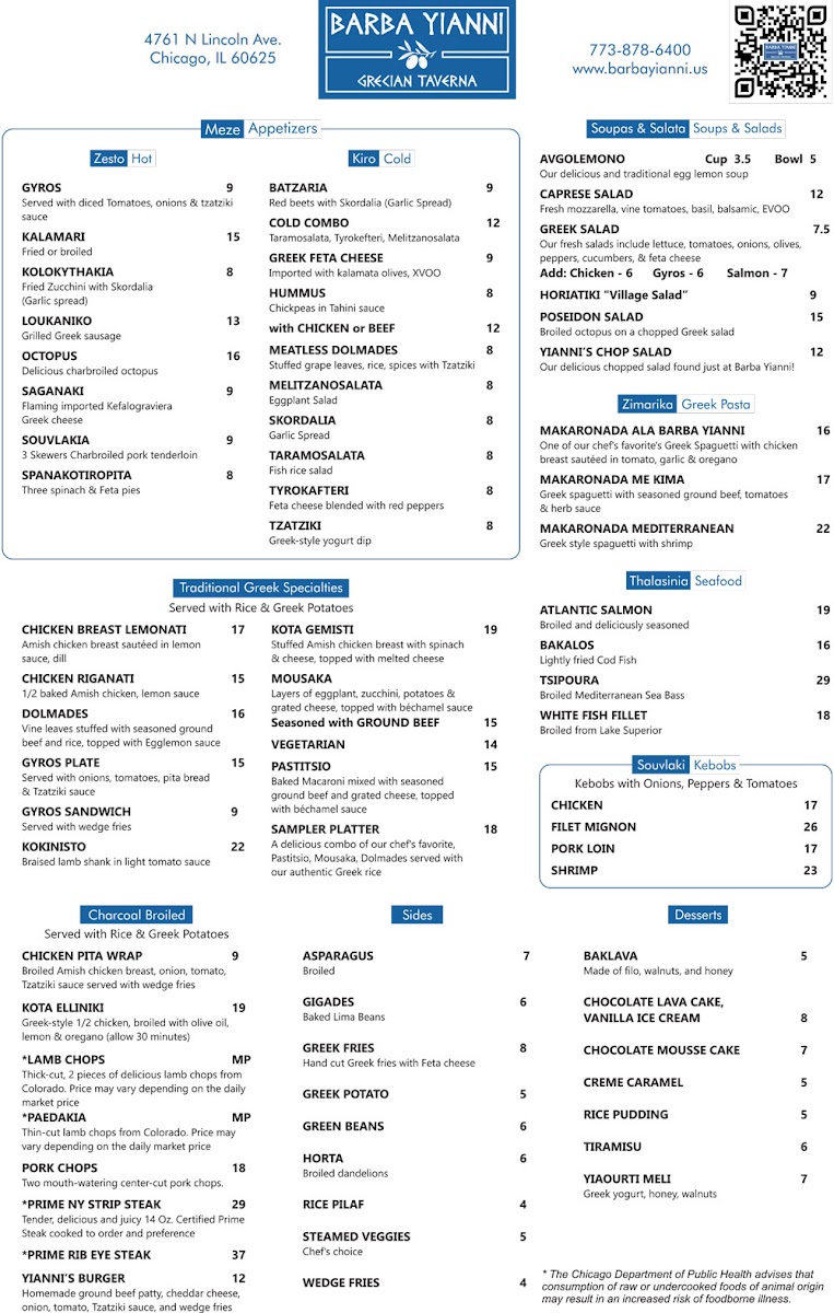 Barba Yianni Grecian Taverna Menu